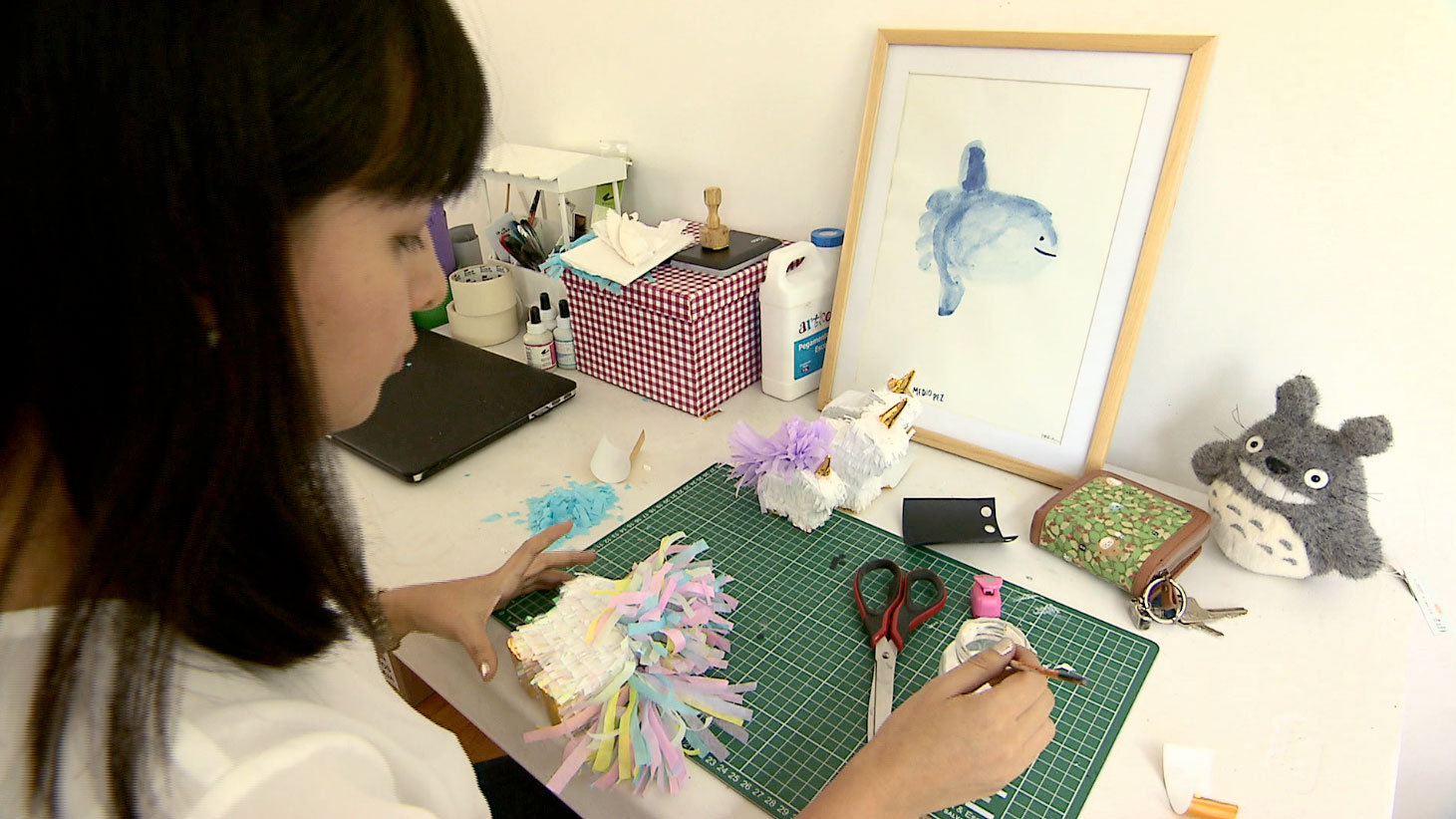 Piñatas miniatura, botones, pines y muñecos tejidos a mano, forman parte de las creaciones de Yeka García y Beto Petiches.